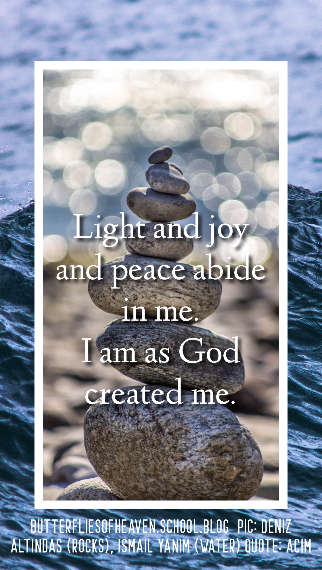 My peace comes from being one with God, and in Him, I find me. I have all the peace in the world. I have the light and joy to shine away the darkness I believed in.