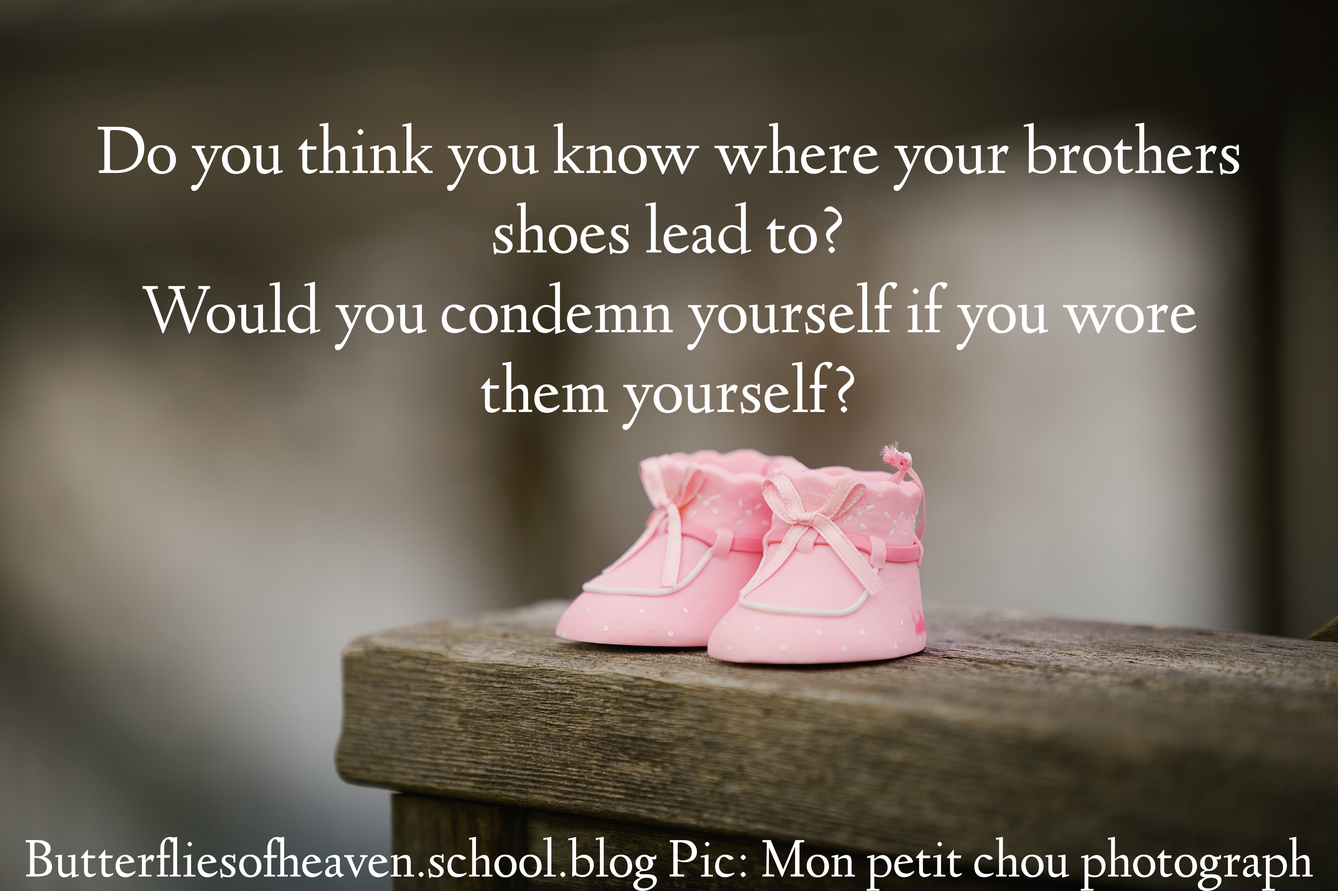 Did I know where my brothers shoes would lead to? No. How could I condemn what I didn’t know? In fact, I always condemned what I thought I knew: people are evil, untrustworthy, and unpredictable.